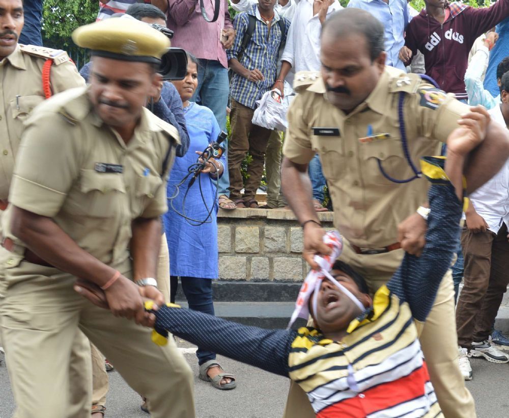 Activists of Students Federation of India organised "Chalo Secretariat" agitation on Monday demanding release of scholarship and fulfillment of other demands. The SFI activists 'gheroad' Telangana Finance Minister Eatala Rajender's car at the State Secretariat