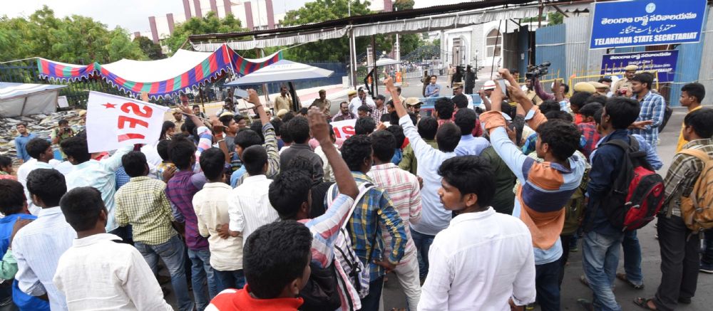 Activists of Students Federation of India organised "Chalo Secretariat" agitation on Monday demanding release of scholarship and fulfillment of other demands. The SFI activists 'gheroad' Telangana Finance Minister Eatala Rajender's car at the State Secretariat