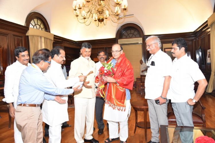 Andhra Pradesh Chief Minister N. Chandrababu Naidu meeting with Union Finance Minister Arun Jaitly in New Delhi on 21st September 2016.