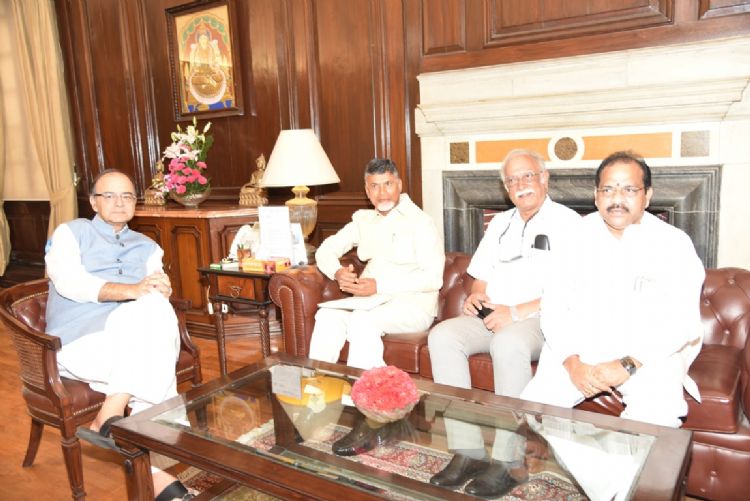 Andhra Pradesh Chief Minister N. Chandrababu Naidu meeting with Union Finance Minister Arun Jaitly in New Delhi on 21st September 2016.