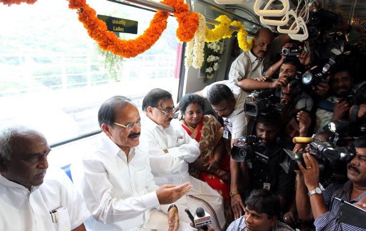 Union Minister M. Venkaiah Naidu travelling in Chennai Metro Rail Passenger Service Train on 21st September 2016.