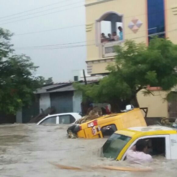 Heavy Rains continued to lash Hyderabad, throwing life out of gear in the city. Low-lying areas in several parts of the city were surrounded with flood waters.
