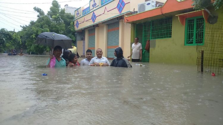 Heavy Rains continued to lash Hyderabad, throwing life out of gear in the city. Low-lying areas in several parts of the city were surrounded with flood waters.