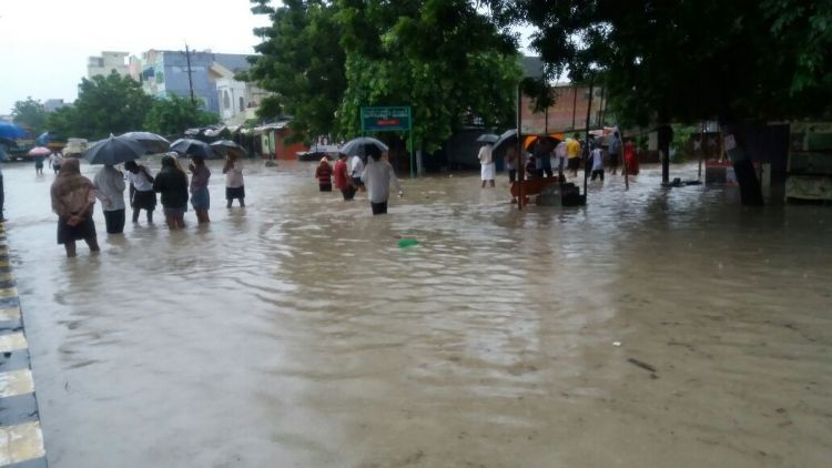 Heavy Rains continued to lash Hyderabad, throwing life out of gear in the city. Low-lying areas in several parts of the city were surrounded with flood waters.