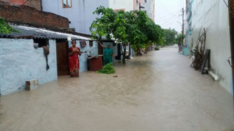 Heavy Rains continued to lash Hyderabad, throwing life out of gear in the city. Low-lying areas in several parts of the city were surrounded with flood waters.