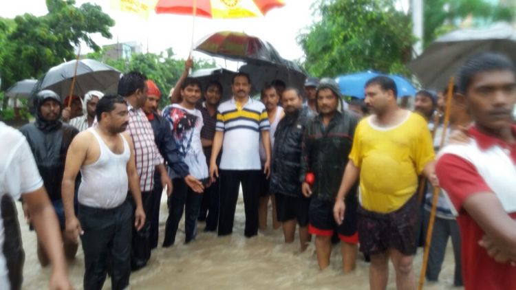 Heavy Rains continued to lash Hyderabad, throwing life out of gear in the city. Low-lying areas in several parts of the city were surrounded with flood waters.