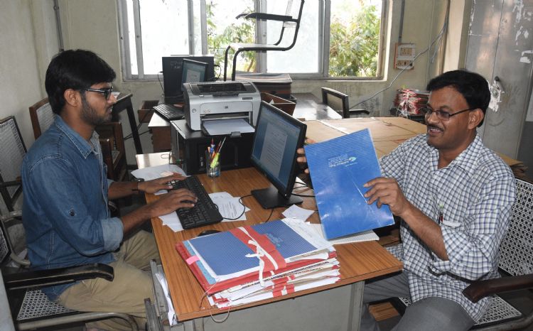Andhra Pradesh Secretariat Employees working at newly constructed chambers in AP Secretariat Building at Velagapudi on 30th September 2016.