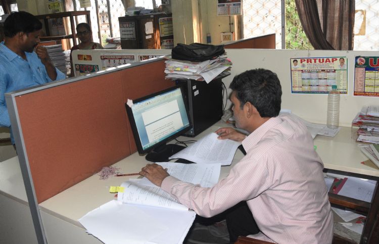 Andhra Pradesh Secretariat Employees working at newly constructed chambers in AP Secretariat Building at Velagapudi on 30th September 2016.