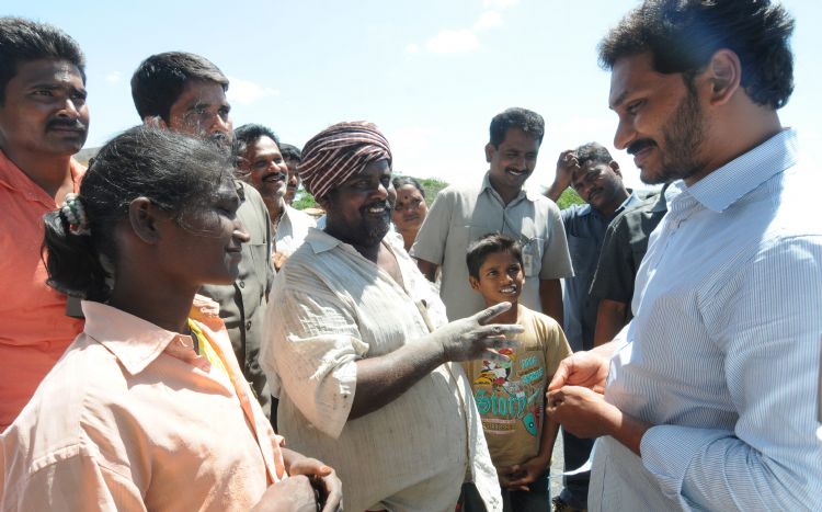 YSRCP Chief YS Jagan Mohan Reddy interacting with farmers at Pendlimarri in YSR Kadapa district on Thursday.