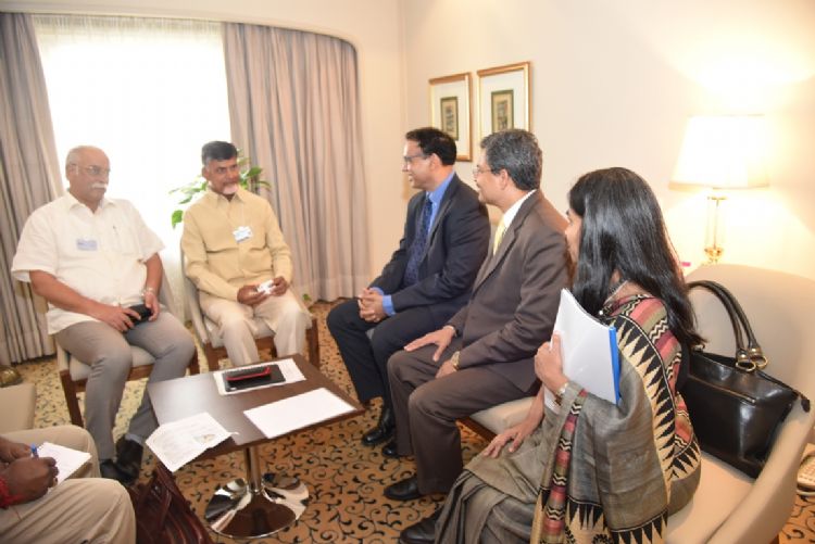 Chief Minister of Andhra Pradesh Nara Chandrababu Naidu meetings with John Rice, Vice Chairman, General Electricals (GE), USA after the India Economic Summit organised by World Economic Forum & CII at New Delhi on 7th October 2016.