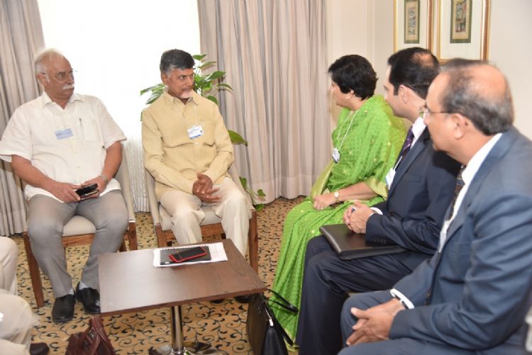 Chief Minister of Andhra Pradesh Nara Chandrababu Naidu meetings with Neelam Dhawan, Country Managing Director, Hewlett Packard Enterprise, India & Team after the India Economic Summit organised by World Economic Forum & CII at New Delhi on 7th October 2016.