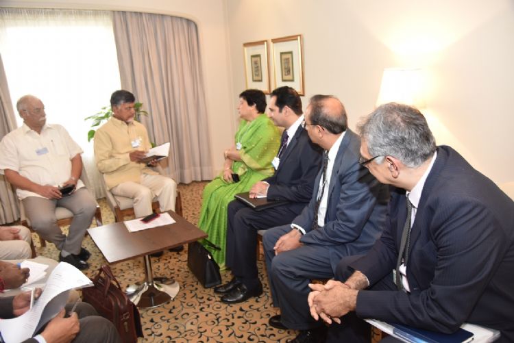Chief Minister of Andhra Pradesh Nara Chandrababu Naidu meetings with Neelam Dhawan, Country Managing Director, Hewlett Packard Enterprise, India & Team after the India Economic Summit organised by World Economic Forum & CII at New Delhi on 7th October 2016.