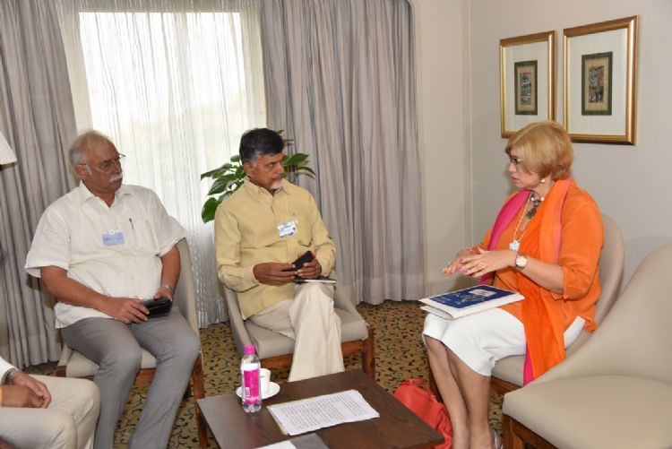 Chief Minister of Andhra Pradesh Nara Chandrababu Naidu meetings with Dr. Philipp Rosler, Head of the Centre for Regional Stratagies, Member of the Managing Board, World Economic Forum after the India Economic Summit organised by World Economic Forum & CII at New Delhi on 7th October 2016.