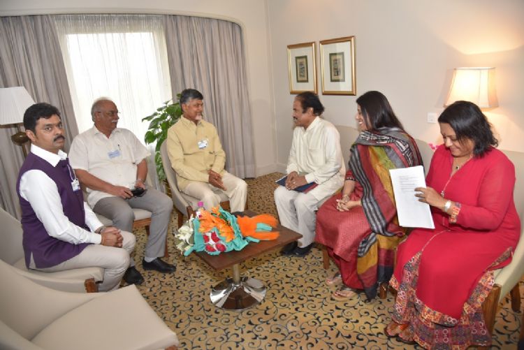 Chief Minister of Andhra Pradesh Nara Chandrababu Naidu meeting with Preeti Sinha, Senior President & Global Convenor, YES Institute after the India Economic Summit organised by World Economic Forum & CII at New Delhi on 7th October 2016.
