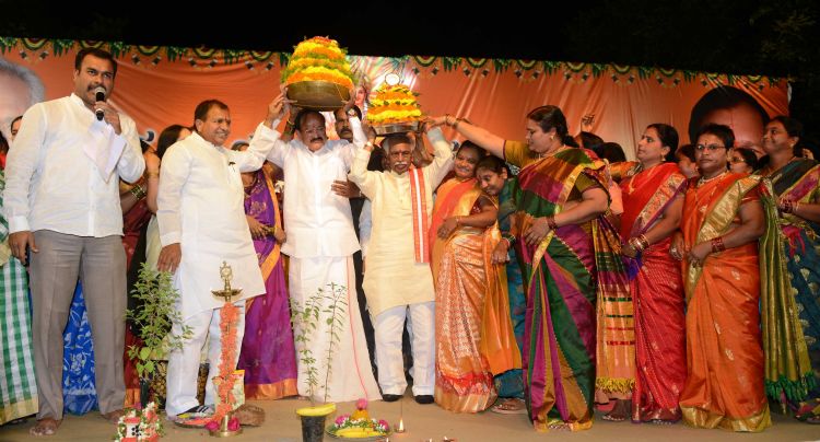 Central Ministers M. Venkaiah Naidu, Bandaru Dattatreya, Chintala Ram Chander Reddy, Khairatabad MLA and others participated in Bathukamma Sambaraalu organised in Jubilee Hills on 7th October 2016.