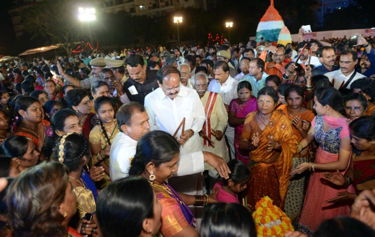 Central Ministers M. Venkaiah Naidu, Bandaru Dattatreya, Chintala Ram Chander Reddy, Khairatabad MLA and others participated in Bathukamma Sambaraalu organised in Jubilee Hills on 7th October 2016.