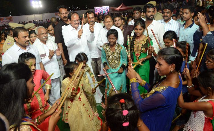Central Ministers M. Venkaiah Naidu, Bandaru Dattatreya, Chintala Ram Chander Reddy, Khairatabad MLA and others participated in Bathukamma Sambaraalu organised in Jubilee Hills on 7th October 2016.