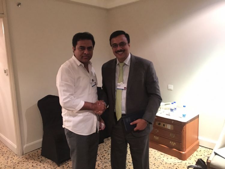 Industries Minister K T Rama Rao who is in Delhi in connection with the World Economic Forum met sevaral industrialists and requested them to explore the possibility of investing in Telangana on 7th October 2016.