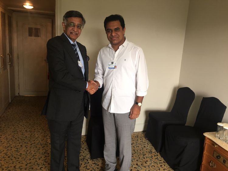 Industries Minister K T Rama Rao who is in Delhi in connection with the World Economic Forum met sevaral industrialists and requested them to explore the possibility of investing in Telangana on 7th October 2016.