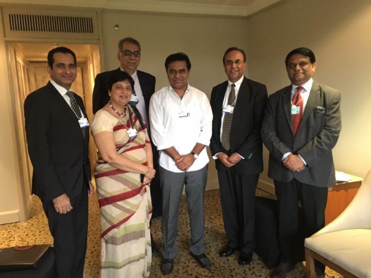 Industries Minister K T Rama Rao who is in Delhi in connection with the World Economic Forum met sevaral industrialists and requested them to explore the possibility of investing in Telangana on 7th October 2016.