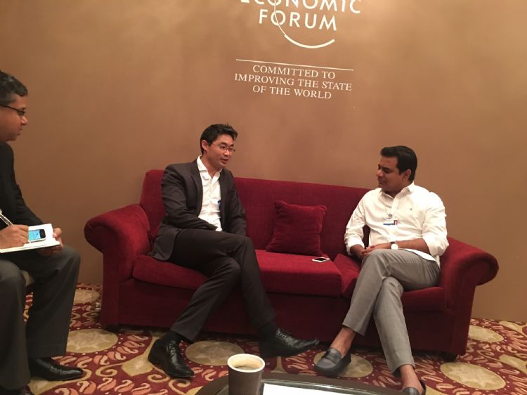 Industries Minister K T Rama Rao who is in Delhi in connection with the World Economic Forum met sevaral industrialists and requested them to explore the possibility of investing in Telangana on 7th October 2016.
