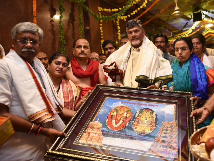Chief Minister N. Chandrababu Naidu along with his wife Bhuvaneswari visited Durga Temple at Vijayawada on 8th October 2016.