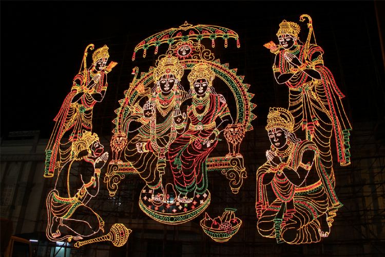 The huge electrical bill boards depicting the colorful profiles of Hindu deities and spectacular scenes from mythological legends are a special feature of the ongoing salakatla Brahmotsavam.