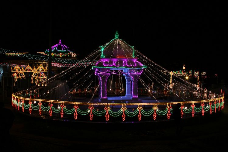 The huge electrical bill boards depicting the colorful profiles of Hindu deities and spectacular scenes from mythological legends are a special feature of the ongoing salakatla Brahmotsavam.