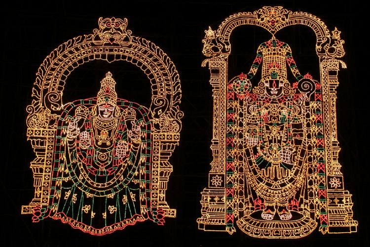 The huge electrical bill boards depicting the colorful profiles of Hindu deities and spectacular scenes from mythological legends are a special feature of the ongoing salakatla Brahmotsavam.