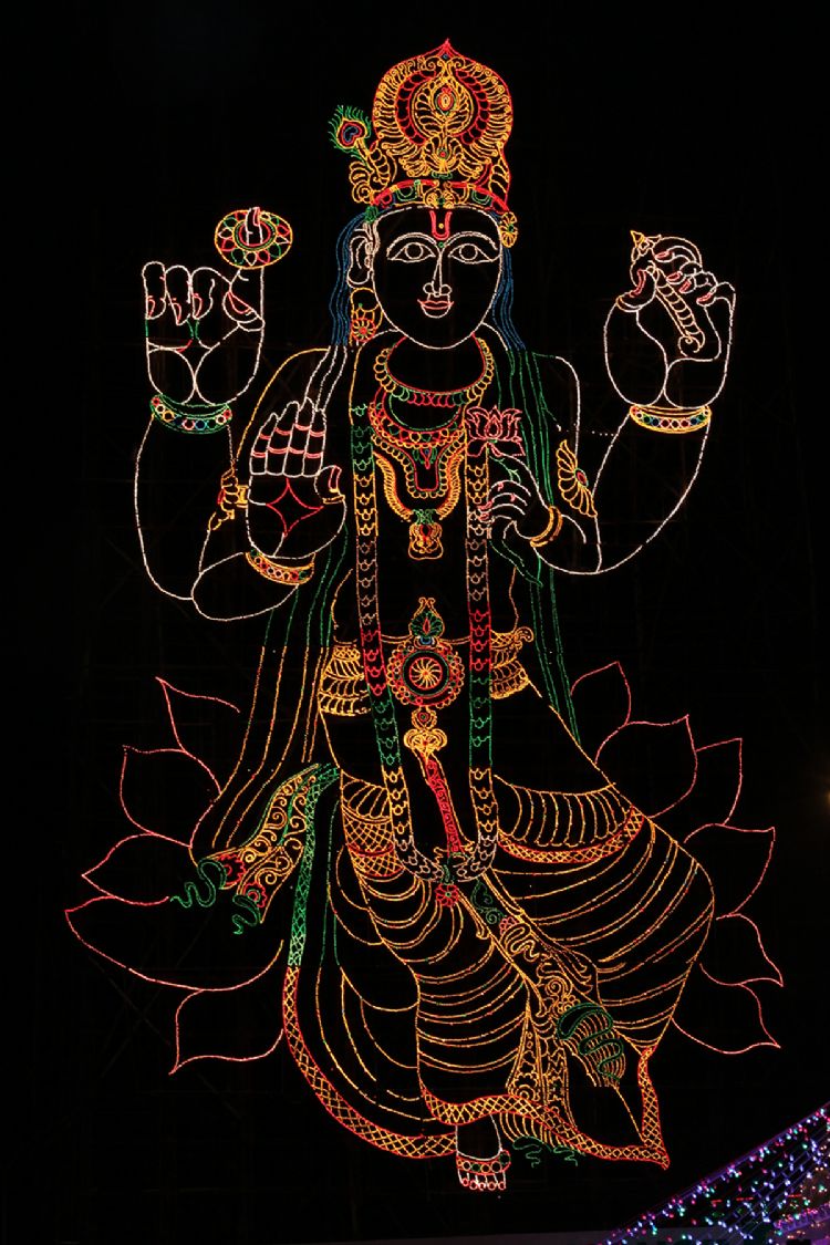 The huge electrical bill boards depicting the colorful profiles of Hindu deities and spectacular scenes from mythological legends are a special feature of the ongoing salakatla Brahmotsavam.