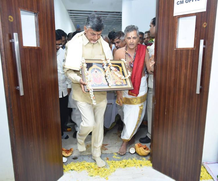 Andhra Pradesh Chief Minister Chandrababu Naidu inaugurated his new office at the secretariat building in Velagapudi on Wednesday.