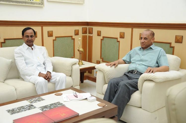 Telangana Chief Minister K Chandrashekar Rao called on Governor ESL. Narasimhan at Raj Bhavan on Monday and briefed him about the functioning of new districts.