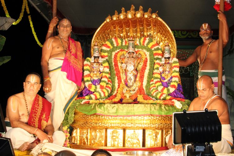 On the auspicious day of Nagulachaviti on Thursday, Lord took celestial ride on the finely decked seven hooded Peddasesha Vahanam in Tirumala.