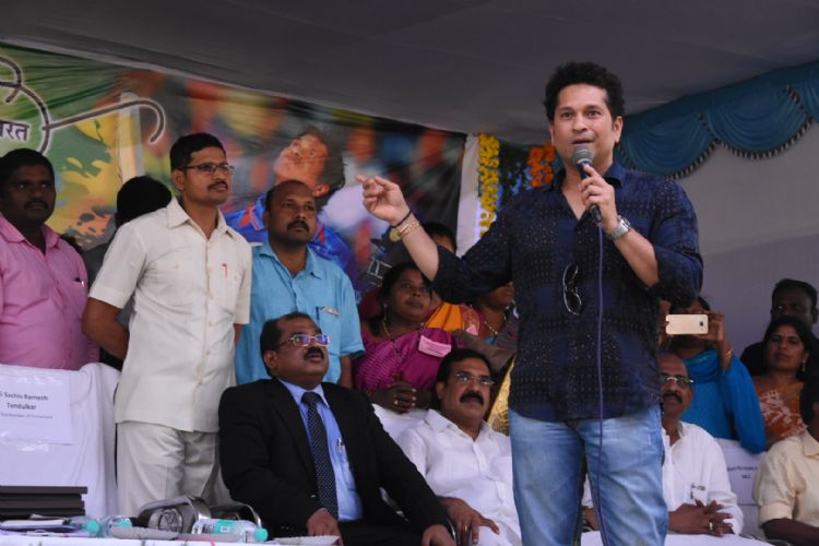 Ace Cricketer and MP Sachin Tendulkar inagurated the impressive community hall constructed at a cost of Rs.1.15 crore in Puttamraju Kandriga, his adopted village in Nellore District on 16th November 2016.