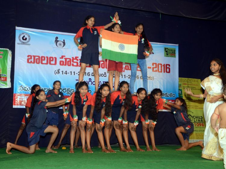 Children performing at District Level Balala Hakku Varotsavaalu orgainised in Srikakulam on 19th November 2016.