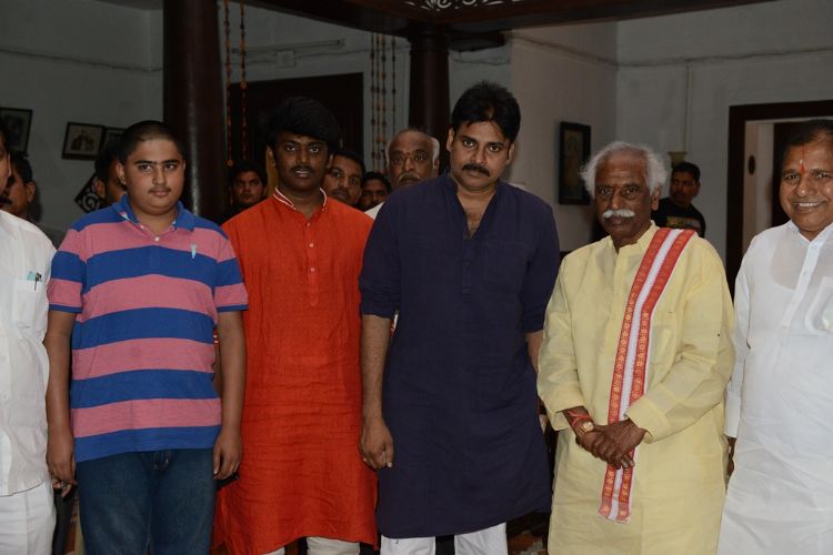 Union Minister Bandaru Datthathreya met Janasena Chief and Cine Actor Pawan Kalyan and invited him to attend his daughter marriage at Katamarayudu sets in Hyderabad on 20th November 2016.