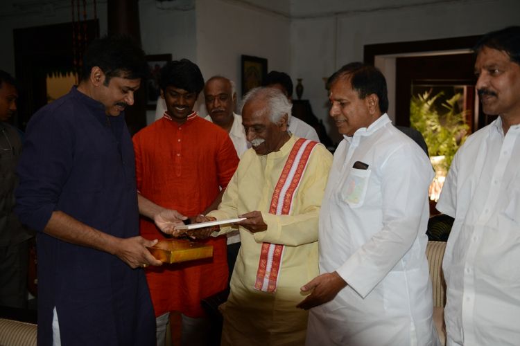 Union Minister Bandaru Datthathreya met Janasena Chief and Cine Actor Pawan Kalyan and invited him to attend his daughter marriage at Katamarayudu sets in Hyderabad on 20th November 2016.