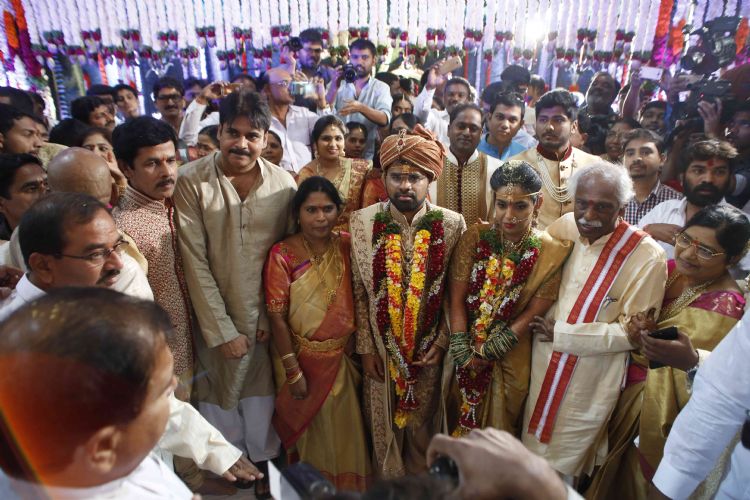Cine Actor and Janasena Chief Pawan Kalyan attending wedding ceremony of Union Minister Bandaru Dattatraya daughter Viaya Laxmi with Dr Jignesh Reddy in Hyderabad on 24th November 2016.