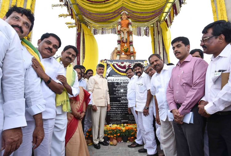 Andhra Pradesh Chief Minister N. Chandrababu Naidu performing Ganga Pooja and Releasing Water to Gollapalli Reservoir on 2nd December 2016.