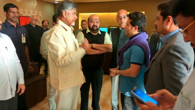 Andhra Pradesh Chief Minister Chandrababu Naidu met master blaster Sachin Tendulkar at Delhi Airport and discussed the development work of the village Puttam Raju Kandriga in Nellore District adopted in the state on 3rd December 2016.