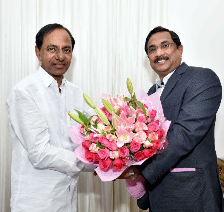 Newly appointed Chief Secretary of Telangana K. Pradeep Chandra met Chief Minister K. Chandrashekhar Rao at Pragathi Bhavan on 4th December 2016.