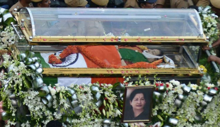 Tamil Nadu Chief Minister Jayalalitha was buried next to the memorial of Dr MGR at Marina Beach in Chennai. Lakhs of followers gathered along the route to pay their final respects to Jayalalitha on 6th December 2016.