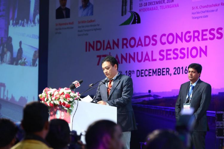 Union Minister Nitin Gadkari participated in 77th Indian Roads Congress held in Hitex grounds in Hyderabad on 17th December 2016.
