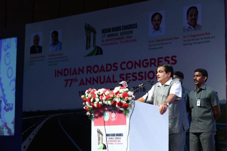 Union Minister Nitin Gadkari participated in 77th Indian Roads Congress held in Hitex grounds in Hyderabad on 17th December 2016.