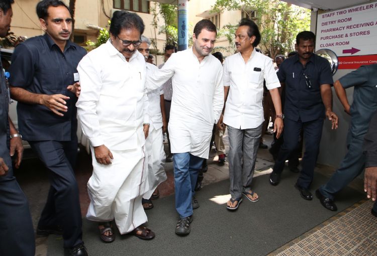 AICC Vice President Rahul Gandhi visited Cauveri Hospital where formar Chief Mininster Karunanidhi admitted for treatment in Chennai on 17th December 2016.