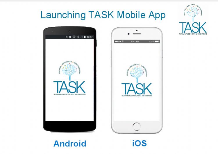 Telangana IT Minister K. Taraka Rama Rao and other Ministers participated in launching of TASK Mobile App in Hyderabad on 20th December 2016.