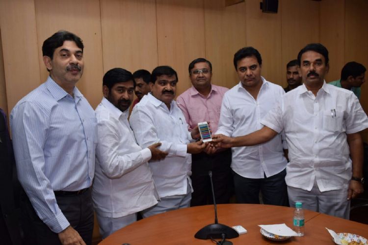 Telangana IT Minister K. Taraka Rama Rao and other Ministers participated in launching of TASK Mobile App in Hyderabad on 20th December 2016.