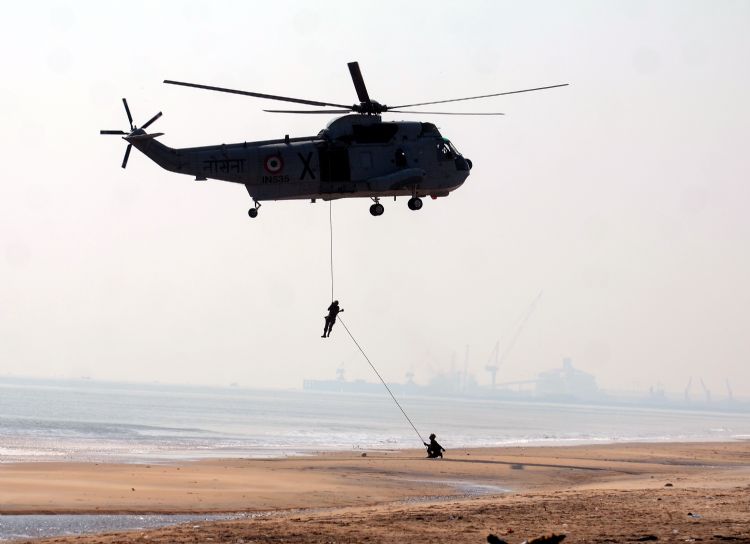 Indian Army from Visakhapatnam and Eastern Range performing exercises in Bay of Bengal at Kakinada Coast on 21st December 2016.