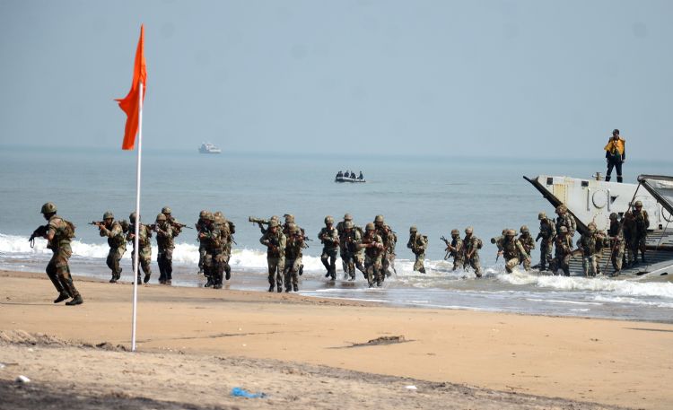 Indian Army from Visakhapatnam and Eastern Range performing exercises in Bay of Bengal at Kakinada Coast on 21st December 2016.