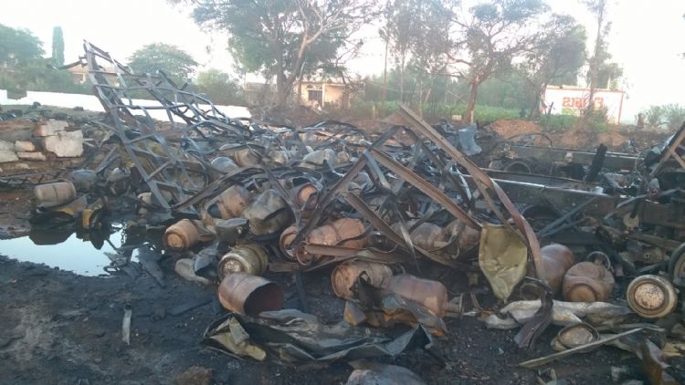 More than 900 LPG cylinders blast at around 1:00am on Monday near Chintamani in Chikkaballapur District in Karnataka. No one was hurt in the incident even as 3 vehicles were gutted in the blast.